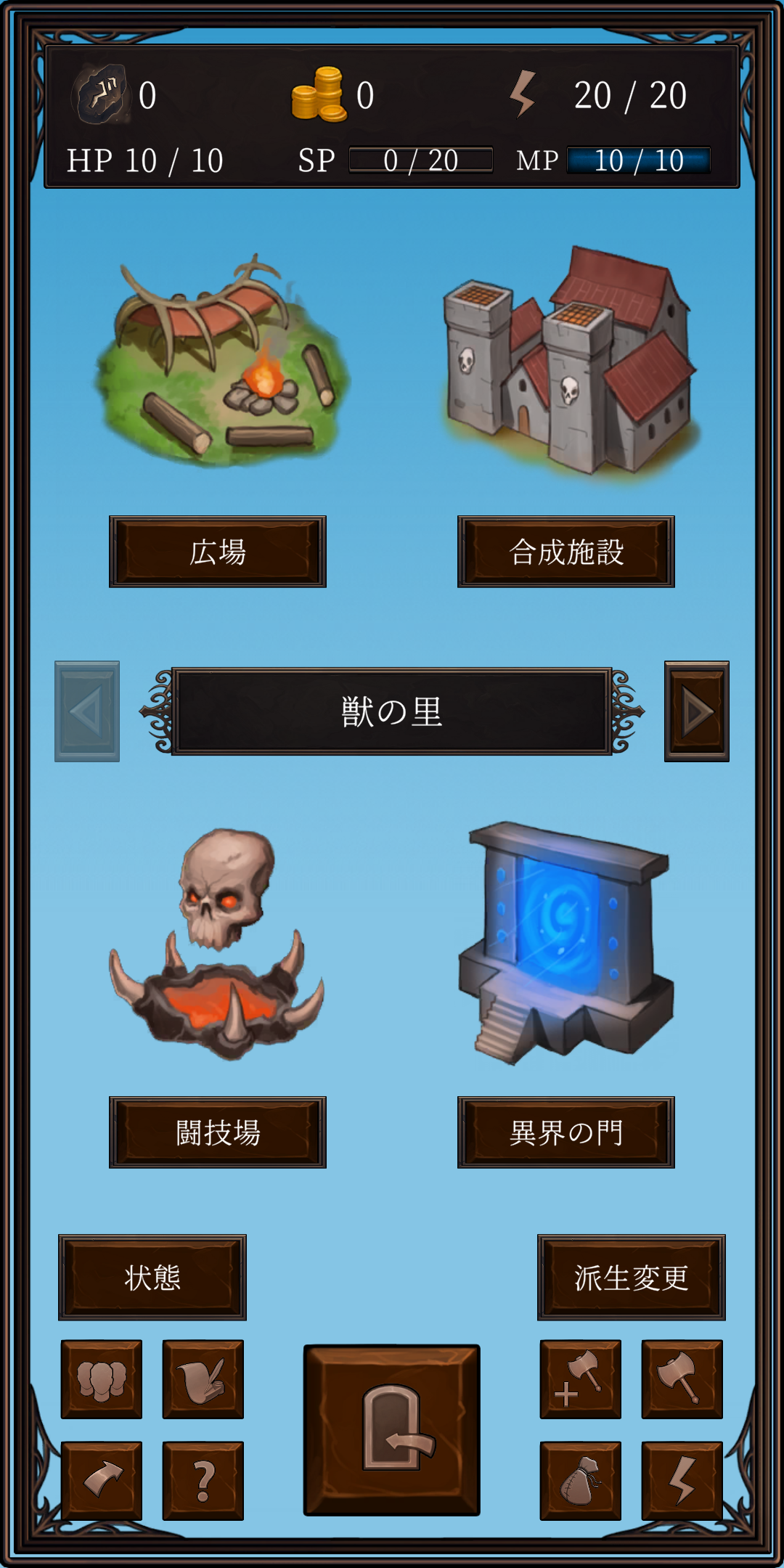 レベルアップによる基礎能力値の成長に加え、武器・意思・アイテムを装備し、それぞれ専用施設で強化可能。