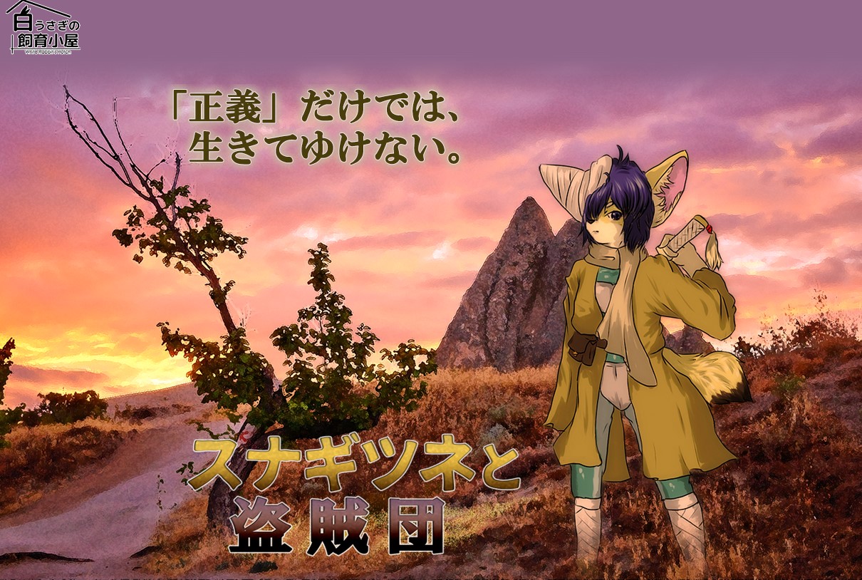 RPGツクールMVにて制作した短編RPG。デジゲー博2016にて初公開。 獣人の青年が、荒廃した世界を旅し、悪の盗賊団を打ち倒す勧善懲悪王道物語。 バトルキャラクターは生き生きとしたフルアニメーションで表現。 アタック・ガード・ラッシュの3すくみとなるコマンドを駆使し、相手の行動を読みながら完封勝利を狙えるバトルが売り。 https://www.whiterabbit-hutch.net/sfox/