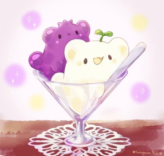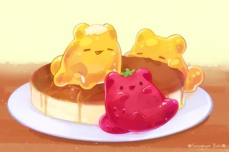 オリジナルキャラです。 ジャムやプリンなどをぷにっとした質感の生き物にしました。