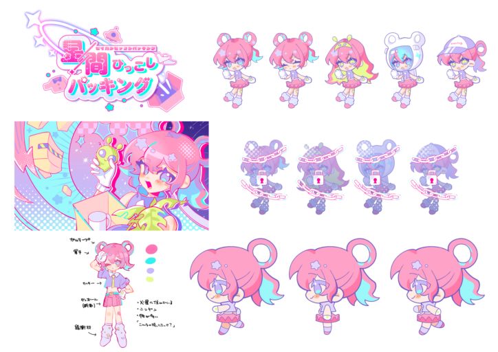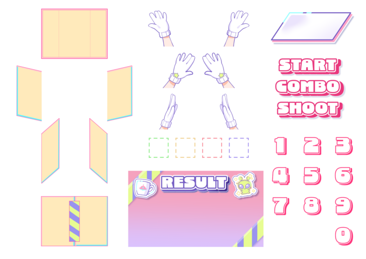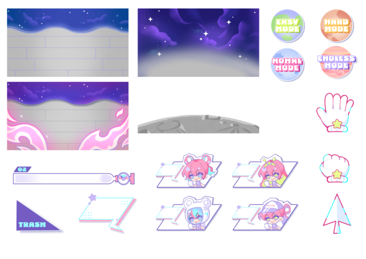 3日間で制作した全てのグラフィックです。 キャラクターデザインからアニメーション、ロゴデザイン、UIなど全て担当しました。