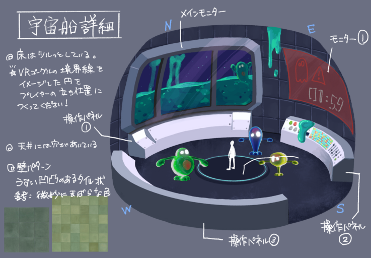 ゼリー星に墜落した主人公の宇宙船。次々と襲ってくるスライムのようなモンスターたちを拳ひとつでやっつけよう! ーーーーー 『FISTZONE360°』というVRボクシングゲームを企画し、完成まで走り切ったプロジェクトです。ディレクター/プランナーをメインに担当。そのほか背景イメージ、キャラモーション指示、Tシャツデザイン、プロモーション映像の作成などをしました。