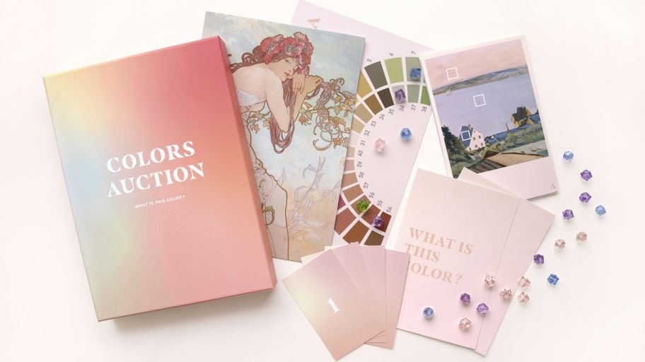 ◼︎作品概要 カラーズオークションは、絵画に使われている色を当てるクイズゲームです。プレイヤーは限られた時間内に、絵画にどんな色が使われているのかを見抜くことを目指します。カラーパレットにストーンをビット(早いもの順に回答)していきながら、プレイヤー全員で予想を楽しむゲームです。最高の名画を完璧に評価できたプレイヤーが勝者となります。 ◼︎プレイ情報 プレイ時間:15分程度 プレイ人数:3 - 4人 対象年齢:13歳以上 ◼︎仕様 パッケージサイズ:A5 内容物:絵画カード24枚 / カラーパレット2枚 / 順番カード4枚 / 目隠しカード2枚 / ストーン44個 / 説明書 ◼︎製作情報 ゲームデザイン:山中麻未・田中佳祐 アートワーク:山中麻未 発売日:2022年4月23日