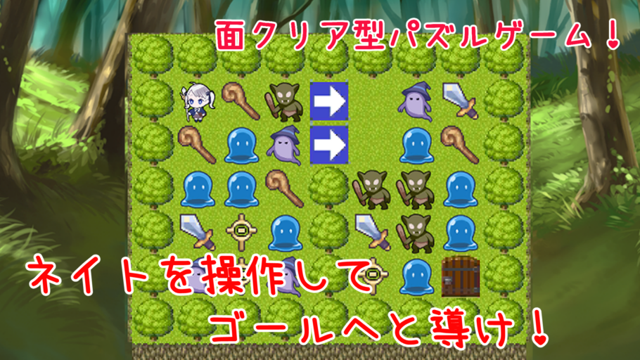 前作のRPG「5つのネイト」の設定を活かしたパズルゲームを作りました。 独特なルールの面クリア型です。 リリース時点で 全100ステージ 今後も ステージ・ギミックを追加し パズルゲームとして長く遊べるようにしていくつもりです。