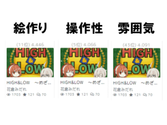 トランプの「HIGH&LOW」とネットミームである「5000兆円」、それに「直観的に可愛いと思える2Dキャラクター」を掛け合わせた自作ゲーム、 『HIGH&LOW ~めざせ! 26連勝! 5000兆円への道~』 の制作から販売までを行いました。 ■制作部分 プログラム、キャラクターのアニメーション、ゲームデザイン等に関しては根幹部分については概ね自作です。 ランキング機能、ツイート機能、トランプのテンプレート等はアセットを利用しています。 「unity1week」に参加したものであるため、基本的には一週間で制作しています。 (※タイトルコール等、部分的に期間超過してからアップデートした要素もございます) デザイナーでもある「平和なべ」への依頼は「自身で叩き台を作成しブラッシュアップを依頼する」という方法で行いました。 結果として、スピード感を担保しながら、機能面で必要な部分については齟齬なく伝えることができ非常に効率的にクオリティを上げることができました。 メイキング記事をnoteに掲載しています 【『HIGH&LOW ~めざせ! 26連勝! 5000兆円への道~』メイキング記事【Unity1weekお題「回」参加】】https://note.com/m_hanakura/n/nbdbe4e3dc74e 結果として「unity1week(お題「回」)」参加タイトル405中、 操作性:5位 絵作り:11位 雰囲気:43位 との評価を頂きました。 ゲームそのものは以下からプレイ可能です。 【フリー版(unityroom)】https://unityroom.com/games/hal5000 ■販売部分 「unity1week」終了後、 いくつかのアップデートを経て「可能な限り多くのプラットフォームへの提出」を行うことを意識して販売を行いました。 販売(公開)を行ったプラットフォームは以下の通りです。 販売にかかる事務的な作業は全て行っています。 ●公開したプラットフォーム ・Steam ・GooglePlayストア ・DLsite ・FANZA同人 ・メロンブックスDL ・BOOTH ・BASE ・note ・unityroom ・GAMEアツマール ・ふりーむ! ・amazon DLsiteでは評価★5(2021/4/21時点)を獲得し、売上ランキングにも掲載される、(https://twitter.com/M_hanakura/status/1372665269827465219 ) プレイ動画をアップロードしていただける(https://www.youtube.com/watch?v=E2ZIYwhm6-k )など、大変好評を頂いております。 各プラットフォームに出品した経緯や知見についてはnoteの記事として掲載しています。 【思いつく限りのゲームを公開できる場所に公開してみようとした記録】https://note.com/m_hanakura/n/nec85e92e4c52 ●販売した結果 各プラットフォームの合計で、当初目標の30倍を超える販売数を実現しました。 これらの知見はウェブログの記事としてまとめ、50スキ超、500PV超の反響をいただいています。 【自作ゲームを思いつく限りの場所で有料販売したら想像の∞倍売れた話(note)】 https://note.com/m_hanakura/n/nc0bb1f6a08de ●グッズ販売 BOOTHにてグッズを販売しました。 ・ICカードステッカー https://honwakafuwafuwa.booth.pm/items/3007220 ・缶バッジ https://honwakafuwafuwa.booth.pm/items/3007278 ・グッズ販売に関するブログ記事(自作ゲームのグッズの販売を開始してみた話) https://note.com/m_hanakura/n/n0a04243d9a22 ■広報 プレスリリースの作成・ウェブページの作成・プロモーションビデオの制作、 Vtuberへの配信依頼営業、4コマ漫画の制作、ノベライズ等を行いました。 ●プレスリリース 【自作ゲームのプレスリリースを送って掲載された話(note)】https://note.com/m_hanakura/n/n07bb88589eba ●Vtuberへの営業 【自作ゲームをVtuberに実況配信してもらったらすごく楽しかったしゲームも売れたしでとても良かった……という話(note)】 https://note.com/m_hanakura/n/n7f83f924cc65 ●Webページ https://duckplanning.wixsite.com/mysite/highandlow ●4コマ まとめ:https://game-creators.camp/works/yLMqxwwX30aLDIXQ2wVP 【ニコニコ静画】 https://seiga.nicovideo.jp/comic/53667 【pixiv】 https://www.pixiv.net/user/57469727/series/119327 ●小説 まとめ:https://game-creators.camp/works/GrEQVFTCkGs1DREd3lRi 小説家になろう:https://ncode.syosetu.com/novelview/infotop/ncode/n4349ha/