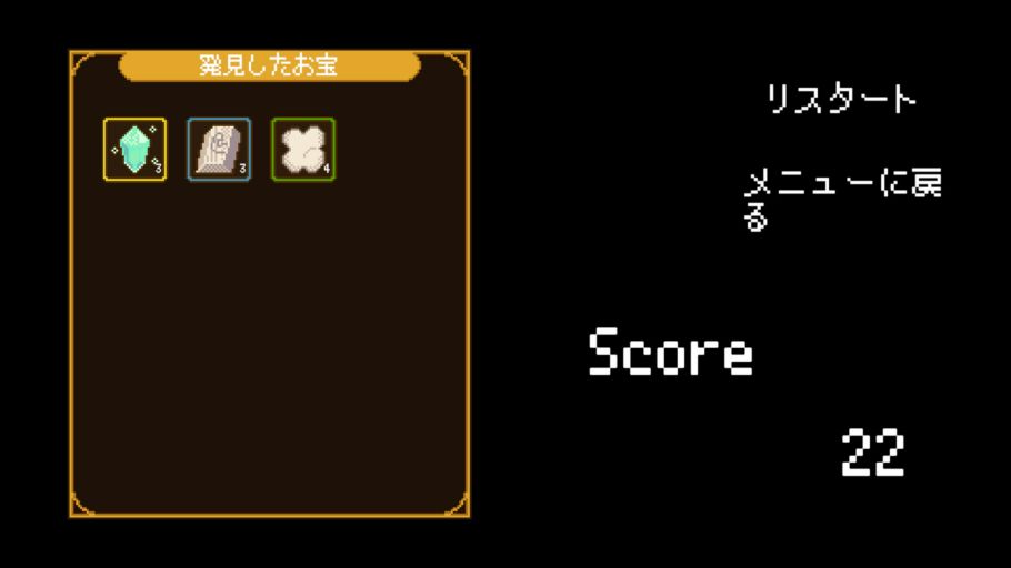 最初の個人製作でパックマンのようなドットイートゲームを作りました。 敵AIはA*経路探索アルゴリズムを用いて十字方向のみですが最短経路でプレイヤーを追ってきます。また今回は経路データを最初に作成してjson形式データを読み取ることにしましたが単純にマスごとの組み合わせ全てのデータを保存すると容量が大きかったのでエリアごとに分割し入口同士の経路探索を動的にゲーム内で行うことでその大きなエリア内のマスのみの組み合わせで経路データを保存するだけで全マスの経路探索を可能にしました。(80MB->6MB) 敵の追跡方法は3種類用意して単純にプレイヤーに向かって追いかけるもの、数マス先を狙って追いかけるもの、ランダムに移動してプレイヤーが探知範囲内に範囲に入ったら追いかけるものです。これにより、単純な追跡から挟み撃ちになるような状況を作りやすくしており難易度が向上しています。 また、グラフィックやBGMも全て自作で行っています。